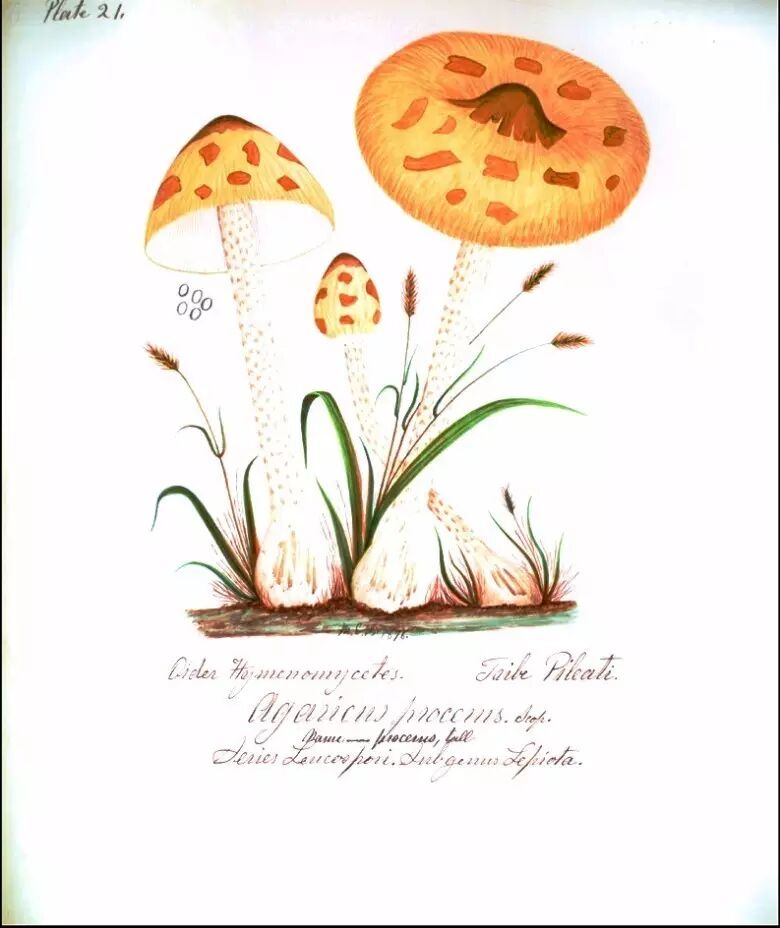 高大环柄菇(高柄环菇,Agaricus procerus Scop.),班宁 绘