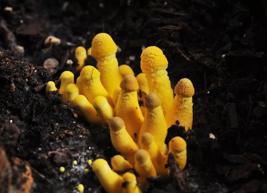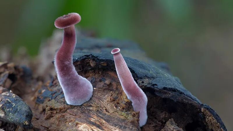 条纹革耳菌还叫“多毛小号菇”,看上去好像生长在另一个星球上。 但这种真菌生活在澳大利亚森林中,腐烂木头常是它们的栖息地。这些样本好像为一种很小的条纹昆虫提供临时住所。