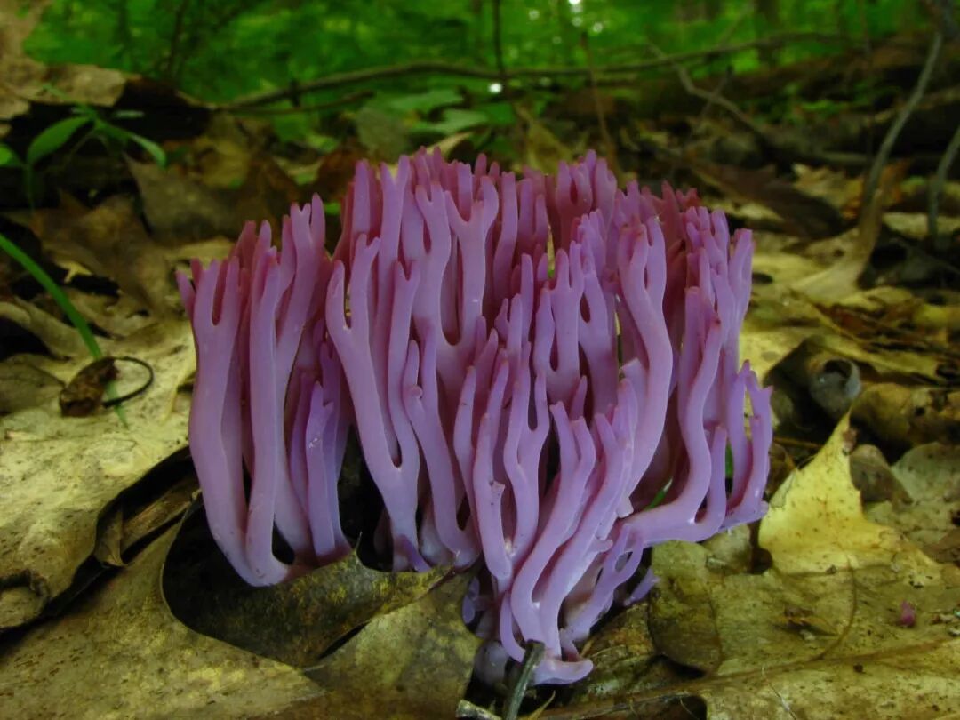 堇紫珊瑚菌是一种分布广泛的真菌。它为紫色管枝状,成群生长,高度可达10厘米,宽可达7厘米。堇紫珊瑚菌是一种典型的珊瑚菌,为腐生生物,在林地的腐叶上生长。