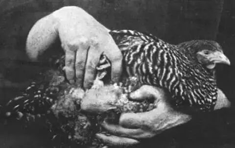 于是他兴致勃勃地对这只患病母鸡下手了。经过活检发现,这是一只长有肉瘤的患癌母鸡。他把提取到的乳癌细胞进行研磨、离心、过滤等操作。然后重新注入健康的母鸡体内。结果健康母鸡大多数都诱发了癌细胞的生长