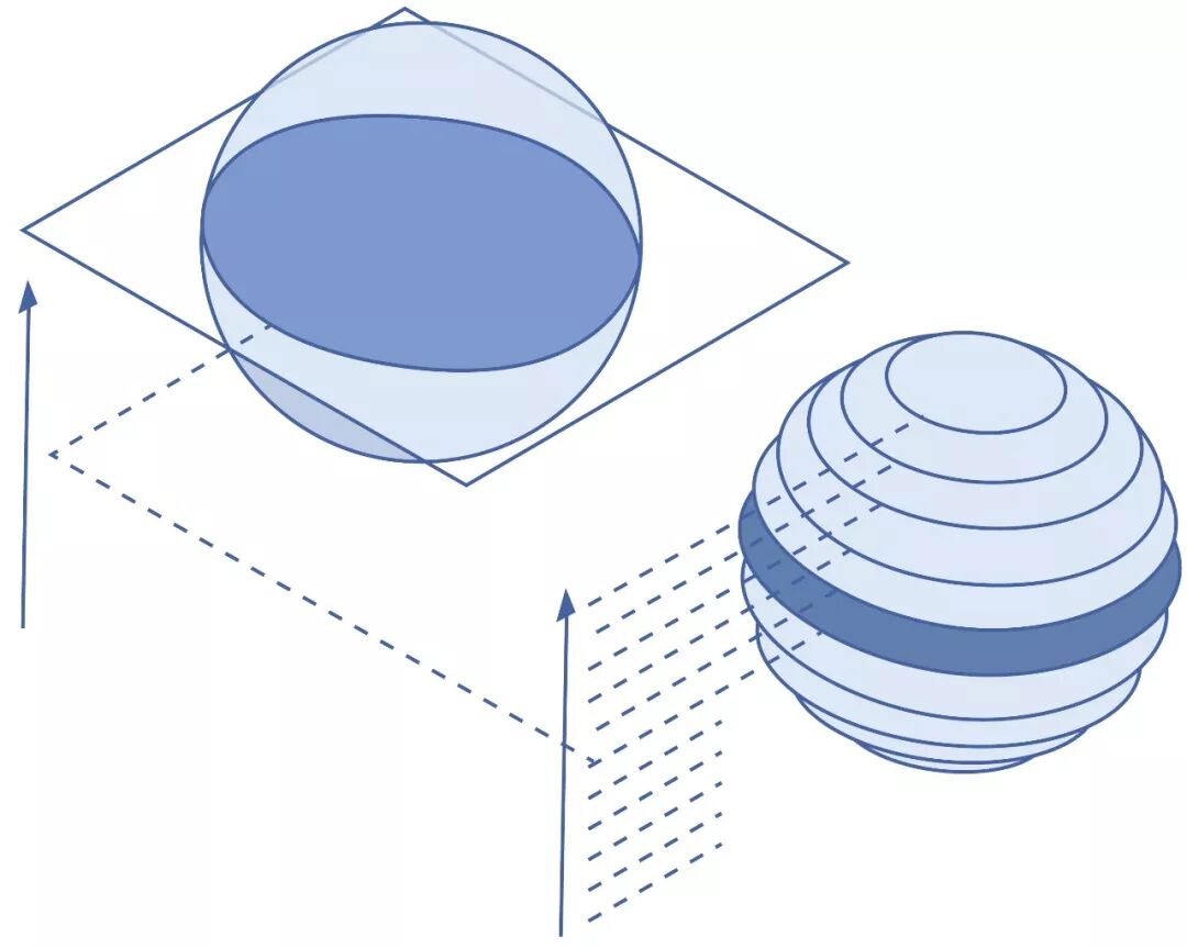我们非常熟悉自己所身处的三维世界,上下、左右、前后,但宇宙真的只有三维吗?似乎没有任何理由能够否定额外维度的存在。假设存在更高的维度,我们可以想象那样的世界吗?现在让我们降一个维度,想象一下我们是二维生物,被领进一个三维的世界。如果我们观察一个三维球体垂直地穿过二维世界,我们会看到什么?我们看到的是大小不等的切片穿过,先是慢慢放大,然后再逐渐缩小。