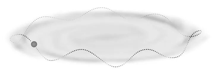 回到我们一开始提出的问题,暗物质真的谋杀了恐龙吗?天文学家相信,银河系被一个巨大的、光滑且弥散的暗物质(halo)所环绕。引发恐龙灭绝的那种暗物质的分布于宇宙中大部分暗物质非常不同。这种类型的暗物质会让暗物质晕保持完整,它们与众不同的相互作用会让它们凝结成一个正好处于银河系中间平面的盘状物。形成的薄薄的暗物质盘可能密度非常高,以至于当太阳系通过时,会导致太阳的轨道穿过我们的星系时会上下振荡,因此暗物质盘的引力影响会特别的强。
