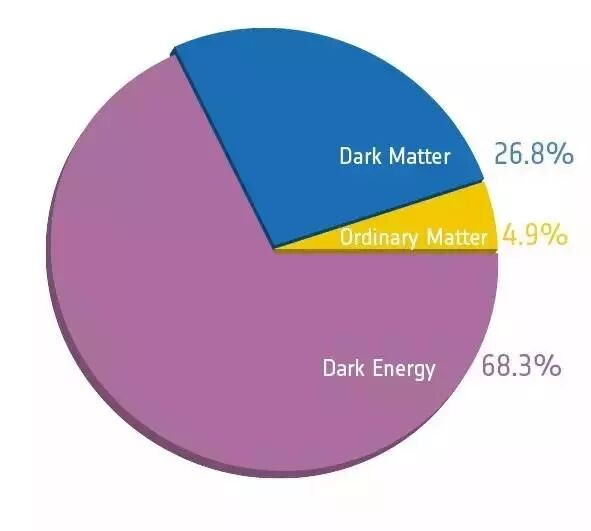 ○ 宇宙的成分:暗物质约为26.8%,暗能量约为68.3%,而我们熟悉的普通物质(比如行星、恒星等)只占4.9%。| 图片来源:ESA/Planck