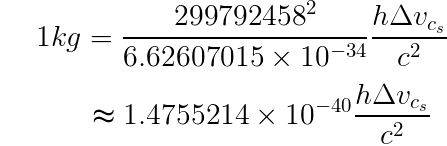 将其中的米(m)和秒(s)分别用光速 c 和铯133 原子共振频率 ∆νCs 定义: