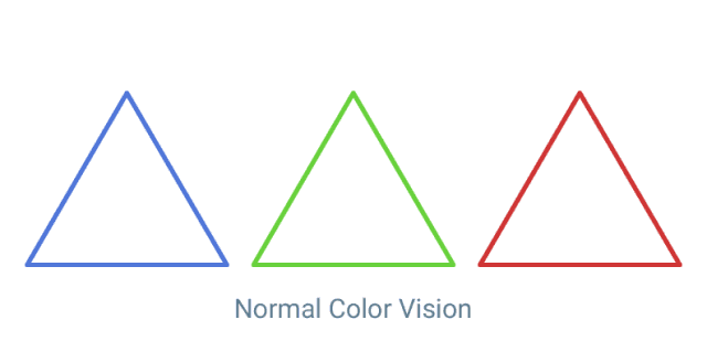 一个视觉正常的人能看见斑斓世界,归功于视网膜上的三种视锥细胞(cone cells)。三种视锥细胞会在吸收光后发生化学变化,通过神经将信息传给大脑,大脑再对收到的信息进行判断。