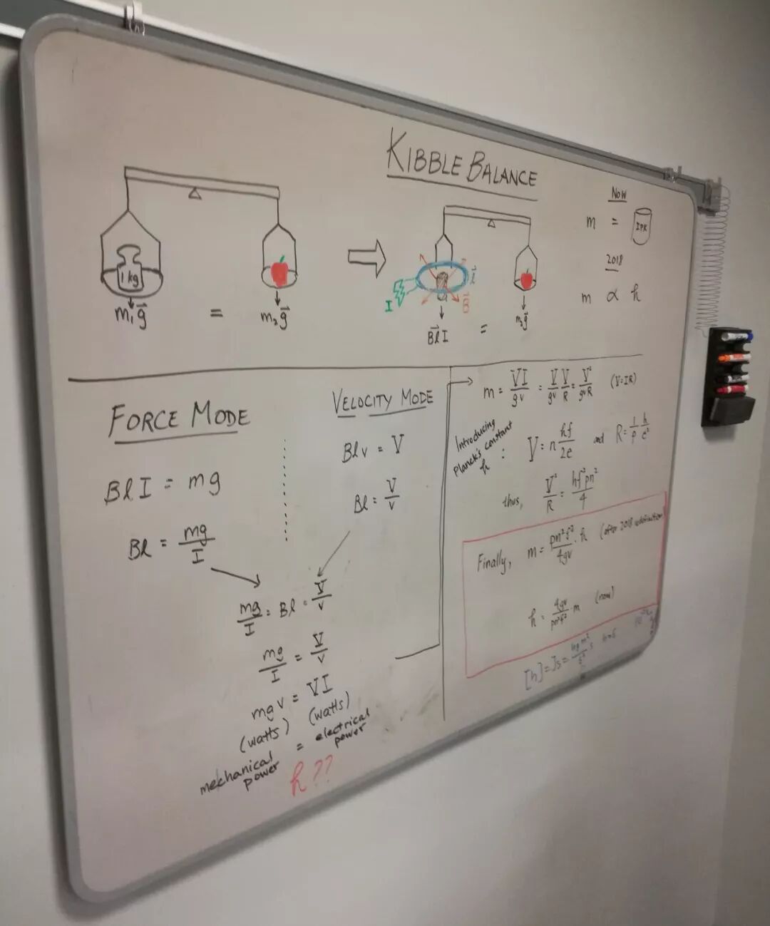 ○ 在NIST的一块白板上写着基布尔秤的基本原理。| 图片来源:NISST