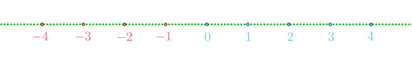 很显然上面的图像是不对称的,哪怕出于美学考虑,人们都有冲动把左边补齐,增加负数,这样就得到了整数域:
