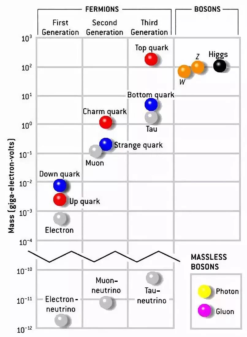 基本粒子质量分布,折线处为跨越六个数量级的“沙漠”(图源:scienceblogs.com)