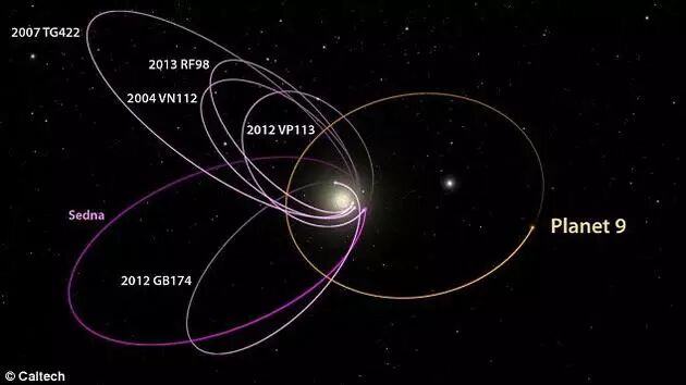 太阳系已知的6颗最遥远的星球的轨道都神秘地偏向一侧。这种情况的形成难道仅仅是一种巧合?更大的可能性是否是它们受到了一种外在引力摄动的影响。今年1月份,美国加州理工学院的科学家们猜测,在太阳系边缘的黑暗之中可能隐藏着一颗巨大的未知行星