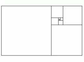 方程(a+b)/a = a/b表明大矩形相似于小矩形:即将大矩形旋转90度,再把它按比例缩小就得到了小矩形。因此,这个大矩形就是古希腊人所说的“黄金矩形”:它包含了一个正方形和其自身的缩小版。同样,这个小矩形也相似于大矩形,它也是个黄金矩形;正如下图所示。所以,这个小矩形也可以分解为一个正方形和一个更小的矩形;这个更小的矩形还能分解成一个正方形和一个更更小的矩形……可以将这个过程一直无限进行下去。