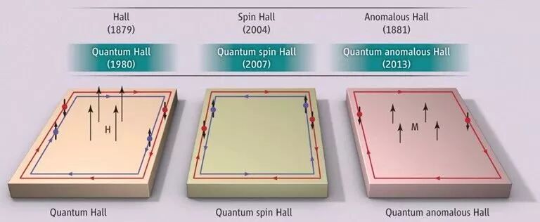 2010年左右,包括中国华人物理学家张首晟教授在内的科学家,在理论上预言了一种叫做拓扑绝缘体的新的材料,拓扑绝缘体就是内部绝缘、表面导电的拓扑材料,这些表面导电通道不受表面形貌、非磁杂质等的影响,所以是很好的一维导体。如果在其中掺入磁性原子形成长程铁磁序,这样无需外加磁场,就能形成稳定的基本没有耗散的量子反常霍尔效应。