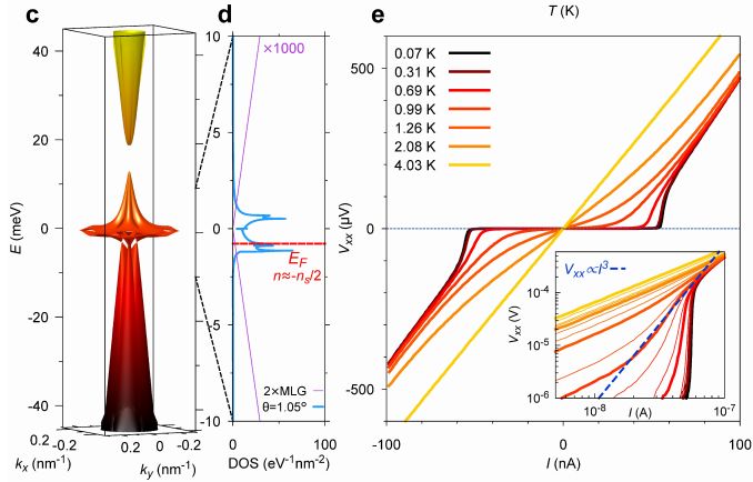 美国麻省理工学院的Pablo Jarillo-Herrero和同事表明当两层石墨烯以一个“神奇角度”缠扭在一起时,它们表现出非常规超导电性,其属性与铜氧化物(其结构往往难以调整)的高温超导性类似。在第二篇论文中,Jarillo-Herrero和同事展示他们的神奇角度石墨烯系统还会导致一种新的绝缘态的出现,这种状态似乎由强大的电子间相互作用推动产生。