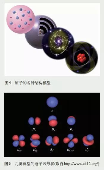 电子云本质上就是电子在原子内部的概率分布,这种分布服从量子力学定律,而且,重点来了,电子云的形状并不是杂乱无章的,而是呈现某些特定的形状。比如,最简单的原子——氢原子,内部只有一个质子和一个电子,电子云的分布就是均匀的球形,球的密度跟直径有关。电子云的形状还有“纺锤型”、“十字梅花型”、“哑铃型”等等(图5),仔细观察这些电子云,就会有个非常重要的领悟——它们都遵从一定的对称规律!