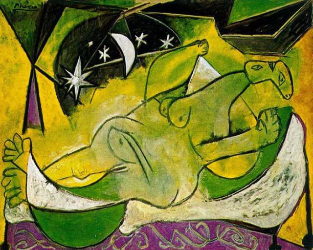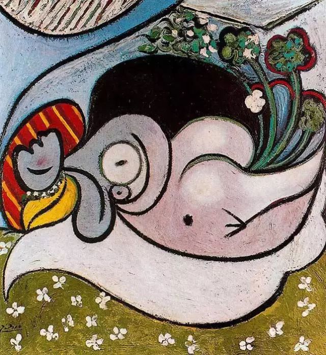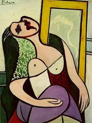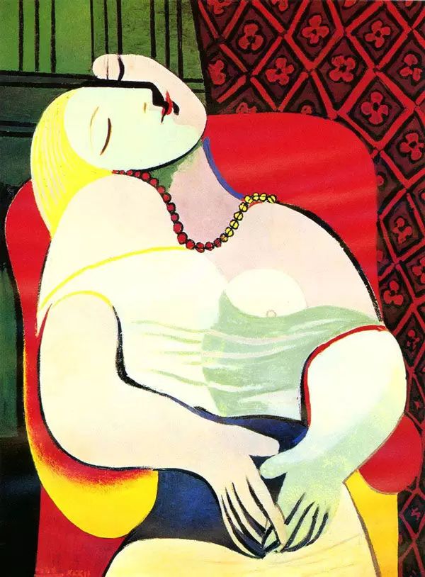 《梦》是毕加索自己最喜欢的画。当年63岁的艺术大师毕加索和17岁的美少女吉纳维夫老少恋,在一个电闪雷鸣的夜晚,他们变成为了情人,毕加索为她画的画《梦》。