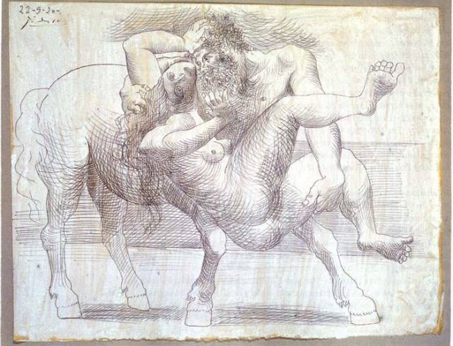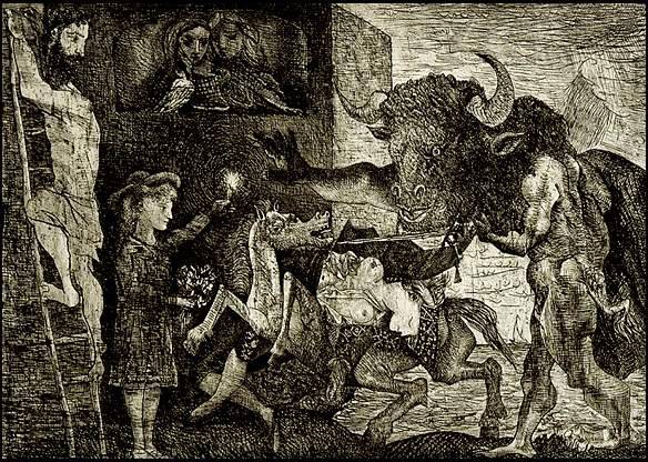 受伤的弥诺陶洛斯(牛头人)和裸女