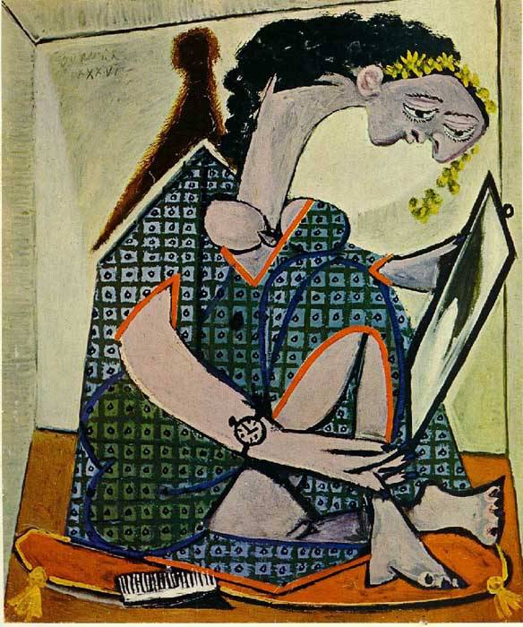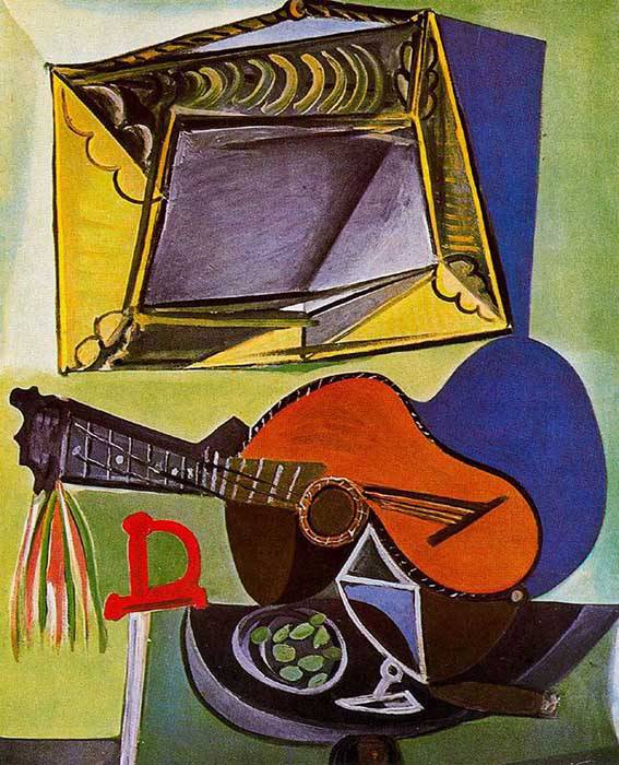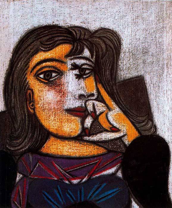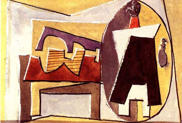 毕加索崇尚立体主义,他的抽象画主观表现出的太阳光是螺旋状照射的,不同于客观世界的光沿直线传播。毕加索小时候常常会有意识地画出螺旋状的物体,虽然他根本无法说明画的是什么。立体主义的艺术家追求碎裂、解析、重新组合的形式,形成分离的画面--以许多组合的碎片型态为艺术家们所要展现的目标。以许多的角度来描写对象物,将其置于同一个画面之中,以此来表达对象物最为完整的形象。物体的各个角度交错迭放造成了许多的垂直与平行的线条角度,散乱的阴影使立体主义的画面没有传统西方绘画的透视法造成的三维空间错觉。背景与画面的主题交互穿插,让立体主义的画面创造出一个二维空间的绘画特色。