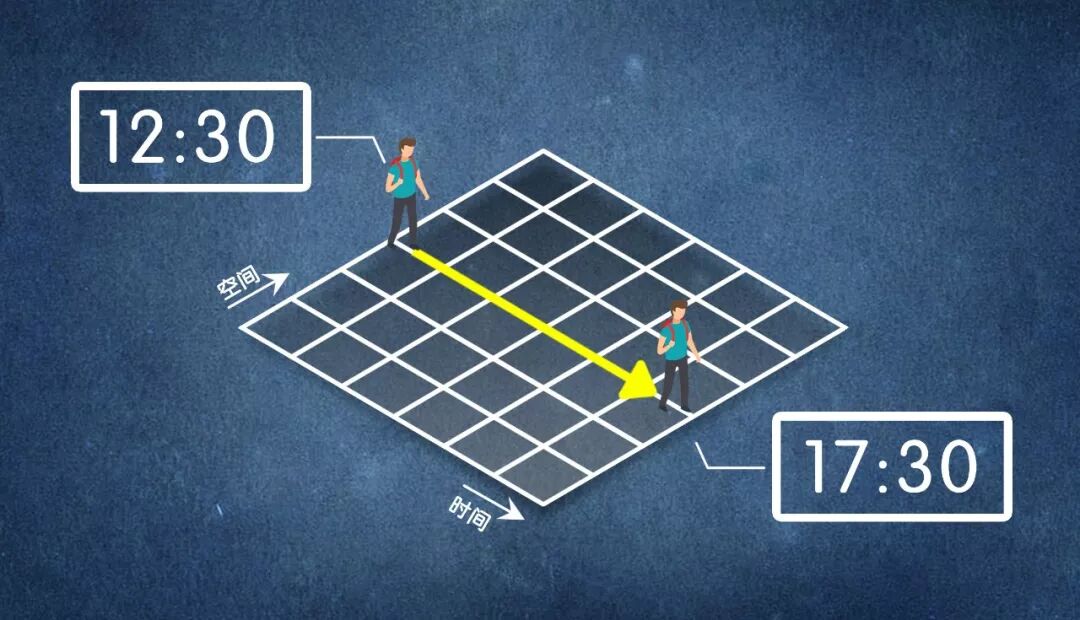 为什么空间和时间会如此不同呢?其实并不。空间和时间是不可以分开思考的概念。在爱因斯坦(Albert Einstein)的狭义相对论中,它们融合成了一个实体。在一个人眼中似乎只在空间上分开了的两个物体,在另一个人来说却可以是在空间和时间上都分开了的。同样地,两个似乎只在时间上分离的事件,也可能从另一个角度上看会发现它们发生在不同的地方。这是有悖我们的日常经验的,那是因为我们的速度不够快。只有当两个观察者的相对速度接近光速时,才会显现出这种明显的不同。