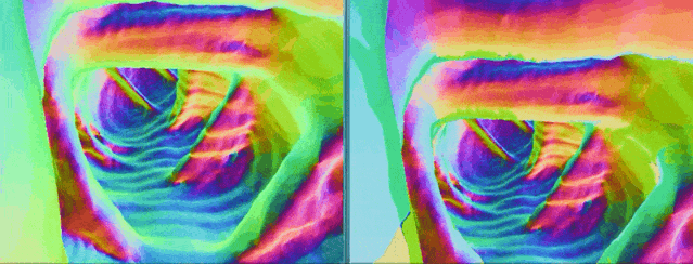 我们来看一个简单的例子。用伪彩色表达肠道内壁,那核心的话我们是要寻找一些肿瘤,或者一些比较大的息肉,那么在这个肠道中探索这个和真实的光学肠镜这个体验是非常相近的。通过这种方法我们就能看到一些比较可疑的息肉。