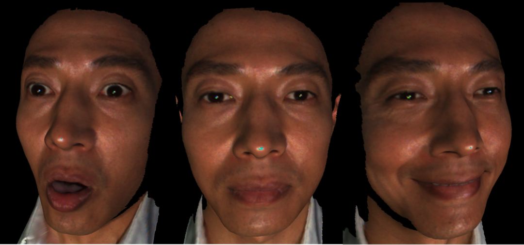 我们用三维扫描,可以得到一个人脸的模型。这里用结构光的方法进行扫描,扫描速度非常快,解析度也非常高。我们可以看到他动态的表情变化,每一帧,有差不多50万个采样点。这样可以得到非常迅速的、大规模的三维数据的采集。
