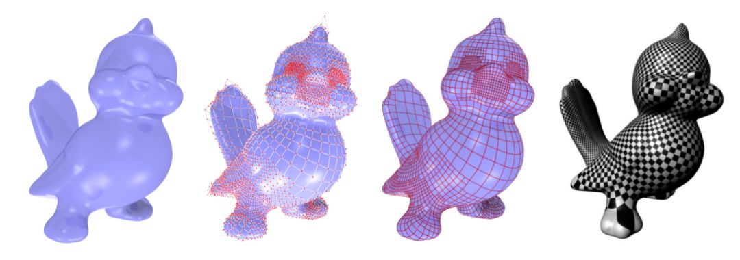 这个结构在计算力学中是非常有用的。比如说我们设计了一个,汽车的发动机。制造一个发动机非常昂贵,在制造之前,我们需要对它进行模拟仿真。模拟仿真的意思就是说在这个发动机上要解一些偏微分方程来计算它的力学特性、热力学特性、电磁特性。为了保证计算的精度,我们需要在这个曲面上进行四边形网格剖分,使剖分尽量地均匀,奇异点尽量地少。
