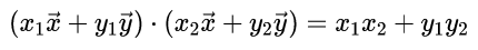 07坐标系下的点乘一个矢量有大小又有方向,我们通常是用一个箭头来表示的,箭头的方向就代表了矢量的方向,而箭头的长短就代表了矢量的大小。如果我们这时候建立一个坐标系,把这个箭头的一端移动到坐标原点,那么箭头的另一端就会固定在坐标系的某个点上,这样的话,我们就可以用一个坐标点来表示一个矢量了。如上图,A点的坐标是(4,3),那么这个矢量OA就可以记为(4,3)。然后,我们把矢量OA沿着x轴y轴做一个分解:于是,我们的矢量OA就可以表示成:OA=OB+OC(矢量的加法就是把两个矢量首尾相连,所以OB+BA=OA,而BA=OC,所以有上面的结论)。这时候,如果我们在x轴上定义一个单位向量x(1,0),那么OB的长度是x长度的四倍,而他们的方向又一样,所以矢量OB=4x。同样,在y轴上定义一个单位向量y(0,1),那么OC=3y。那么,我们的OA就可以重新写成:OA=OB+OC=4x+3y。 这样的话,我任意一个矢量(x1,y1)都可以写成x1x+y1y。于是我就成功的把那个括号给丢了,把坐标表示的矢量变成了我们熟悉的加法运算。这里我们要特别区分:x1,y1是坐标,是数,是标量,而黑体的x,y代表的是单位矢量。那么矢量的点乘就可以写成这样:(x1,y1)·(x2,y2)=(x1x+y1y)·(x2x+y2y)。因为点乘是满足分配律(见性质2)的,所以我们可以把上面的结果直接完全展开成:x1x2xx+x1y2xy+y1x2yx+y1y2yy。 然后下面是重点:因为矢量x和y是分别沿着x轴和y轴的,所以它们是相互垂直的,而根据性质3,两个矢量如果相互垂直,它们的点乘结果就是0。也就是说,xy=yx=0,那么我们展开式的中间两项x1y2xy+y1x2yx就直接等于0。而根据性质4,xx= yy =1(因为x和y都是长度为1的单位矢量,自己跟自己点乘方向肯定一样)。 于是,我们就可以发现两个矢量点乘之后的结果只剩下第一项和第四项的系数部分了,也就是说:(x1,y1)·(x2,y2)=(x1x+y1y)·(x2x+y2y)= x1x2 +y1y2。