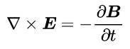 公式的左边是电场的环流,右边是磁通量的变化率,它告诉我们变化的磁通量会在曲面边界感生出电场。我在积分篇里说过,磁通量(B·a)的变化可以有两种方式:磁场(B)的变化和通过曲面面积(S)的变化,我们上面这种方式是把这两种情况都算在内。但是,还有的学者认为只有磁场(B)的变化产生的电场才算法拉第定律,所以法拉第定律还有另外一个版本:这个版本的把原来对整个磁通量(B·da)的求导变成了只对磁感应强度B的求偏导,这就把磁感线通过曲面面积变化的这种情况给过滤了。 在积分形式里有这样两种区别,但是在微分形式里就没有这种区分了。为什么?你想想我们是怎么从积分变到微分的?我们是让这个曲面不停的缩小缩小,一直缩小到无穷小,这个无穷小的曲面就只能包含一个没有大小的点了,你还让它的面积怎么变?所以我们的微分形式就只用考虑磁感应强度B的变化就行了(对应后面那个法拉第定律)。 我们现在假设把那个曲面缩小到无穷小,方程的左边除以一个面积ΔS,那就是电场的旋度▽×E的定义:左边除了一个面积ΔS,那右边也得除以一个面积,右边本来是磁感应强度的变化率(∂B/∂t)和面积的乘积,现在除以一个面积,那么剩下的就是磁感应强度的变化率∂B/∂t了。那么,麦克斯韦方程组的第三个方程——法拉第定律的微分形式自然就是这样:简洁吧?清爽吧?这样表示之后,法拉第定律的微分形式看起来就比积分形式舒服多了,而且它还只有这一种形式。直接从方程上来看,它告诉我们某一点电场的旋度等于磁感应强度的变化率。简单归简单,要理解这种公式,核心还是要理解左边,也就是电场的旋度▽×E。