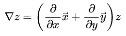 10▽算子我们再仔细看一下梯度▽z的表示:这是一个矢量,但是它看起来好像是▽和一个标量z“相乘”,我们把这个z提到括号的外面来,这时候这个梯度▽z就可以写成这样:所以,如果把▽单独拎出来,就得到了这样一个东西:这个东西就值得我们玩味了,这是啥?▽z表示的是二元函数z=f(x,y)的梯度,也就是说我们先有一个函数z,然后我们把这个▽往函数z前面一放,我们就得到z的梯度。从函数z得到z的梯度的具体过程就是对这个函数z分别求x的偏导和y的偏导。 也就是说,单独的▽是这么个东西:我▽自己本身并不是什么具体的东西,我需要你给我一个函数,然后我对你这个函数进行一顿操作(求x和y的偏导),最后返回一个这个函数的梯度给你。这就像是有一个特定功能的模具:你给我一堆面粉,我一顿处理之后返回你一个饼。但是显然的,它并不是面粉,也不是饼,它单独的存在没有什么意义,它一定要跟面粉结合才能产生有具体意义的东西。这种东西叫算子,▽就叫▽算子。基于▽算子的巨大影响力,它又有一大堆其他的名字:从它的具体功能上来看,它被称为矢量微分算子;因为它是哈密顿引入进来的,所以它又被称为哈密顿算子;从读音上来说,它又被称为nabla算子或者del算子。这些大家了解一下,知道其他人在谈论这个的时候都是在指▽算子就行了。