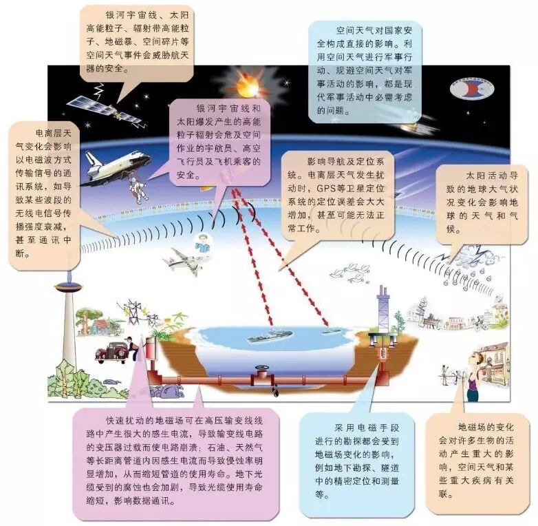 在太阳黑子上局部亮区域即为谱斑,谱斑亮度的突然增强,就会形成耀斑。它能在短时间内释放大量能量,引起局部区域瞬时加热,向外发射各种电磁辐射,并伴随粒子辐射突然增加,形成太阳风暴,影响日地之间的空间环境,对卫星、无线电通信和地面高压输电等技术系统带来多种影响和危害。