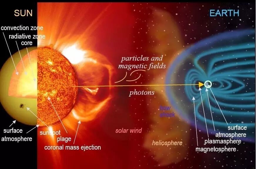 太阳大气是一个层状结构,整个太阳分为好几层,由内而外可分为光球层、色球层和日冕。