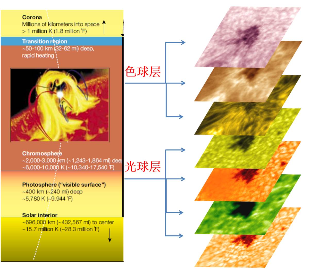 目前,世界上有诸多太阳望远镜,国内也有不少各种口径的太阳望远镜,通过这些望远镜,科学家们积累了大量的观测数据,可是,我们为什么还要开展多波段成像观测呢?这就要谈到太阳大气的结构了。