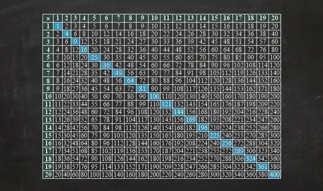 ○ 这个简单的乘法表沿对角线展示了前20个正整数的平方数。神奇的是,不仅3² + 4² = 5²成立,10² + 11² + 12² = 13² + 14²也同样成立。这种关系并不是巧合。