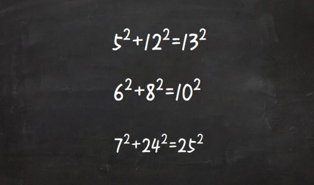 毕达哥拉斯定理几乎是所有人最早学到的数学定理之一:一个直角三角形最长的边(斜边)的平方,等于另两条边(直角边)的平方和。满足这一定理的第一个整数组合是三边分别为3、4和5的三角形:3² + 4² = 5²。其他一些同样满足这一关系的整数组还包括: