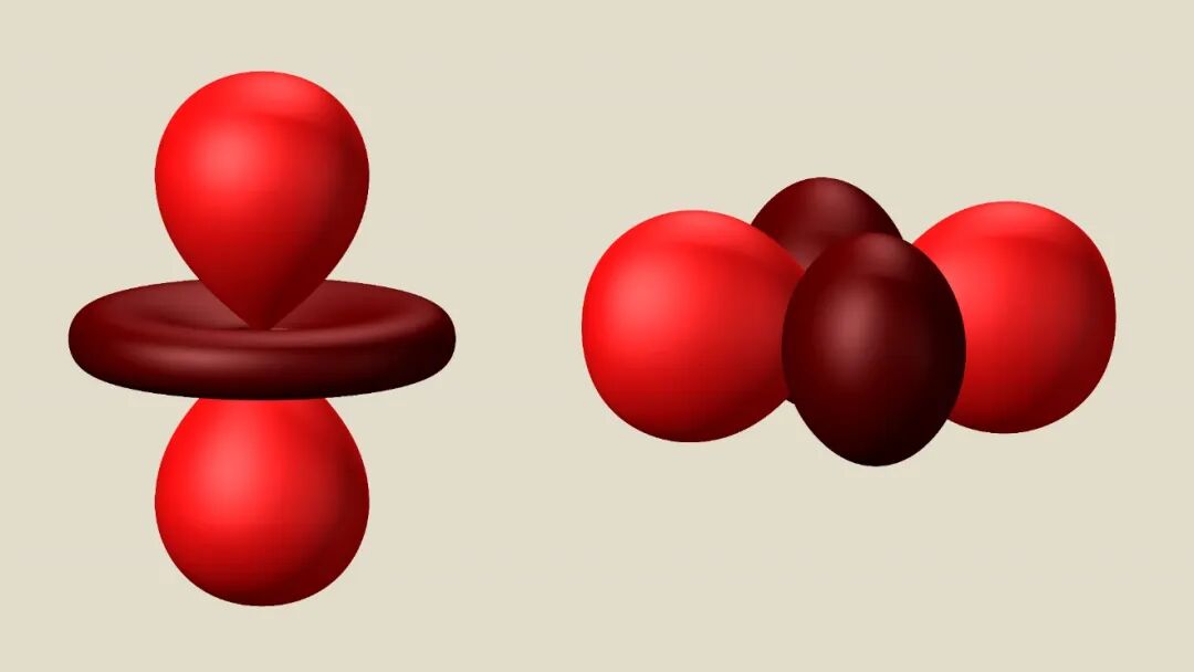 模型代表围绕原子核不同方向的模糊电子云 | 图片来源:Greg Stewart/SLAC National Accelerator Laboratory)