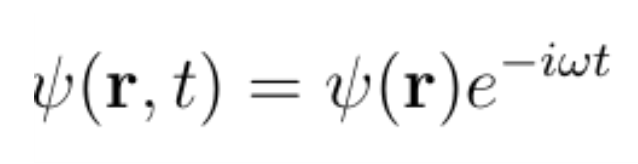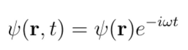 其中m是粒子的质量,ħ是普朗克常数,V(r)是势场,E是粒子的总能量。请注意,如果加上与时间相关的相位因子exp(-iωt),波函数写为: