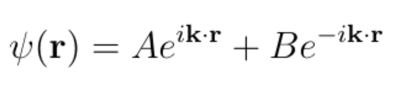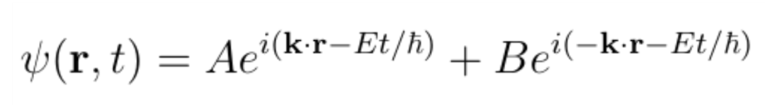 该波函数描述两个平面波的叠加。第一个系数为A,是沿k方向传播的平面波。第二个系数为B,在相反的方向传播。由于在我们的实验中,我们知道所有电子都沿+ k方向传播,因此B必须为零。如果有某种原因导致任何电子反射回电子枪,则B不会为零。因此,我们有: