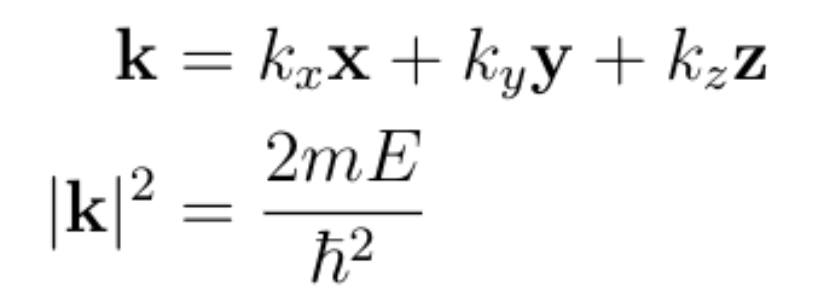 假设在我们的阴极射线管实验中,我们知道电子的能量,因为我们可以控制电子离开电子枪的能量。可以确定波函数为: