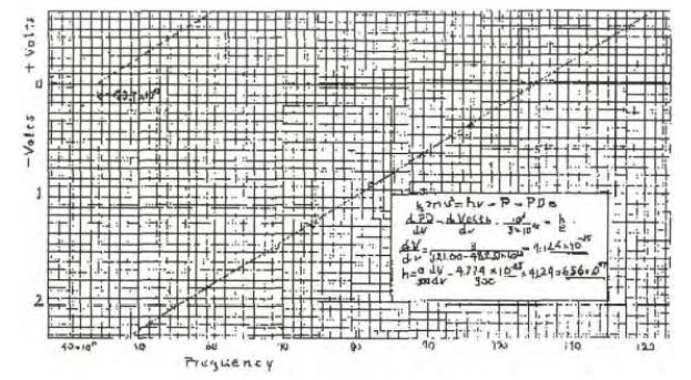 密立根光电效应实验中遏制光电流的电势与光的频率的关系图
