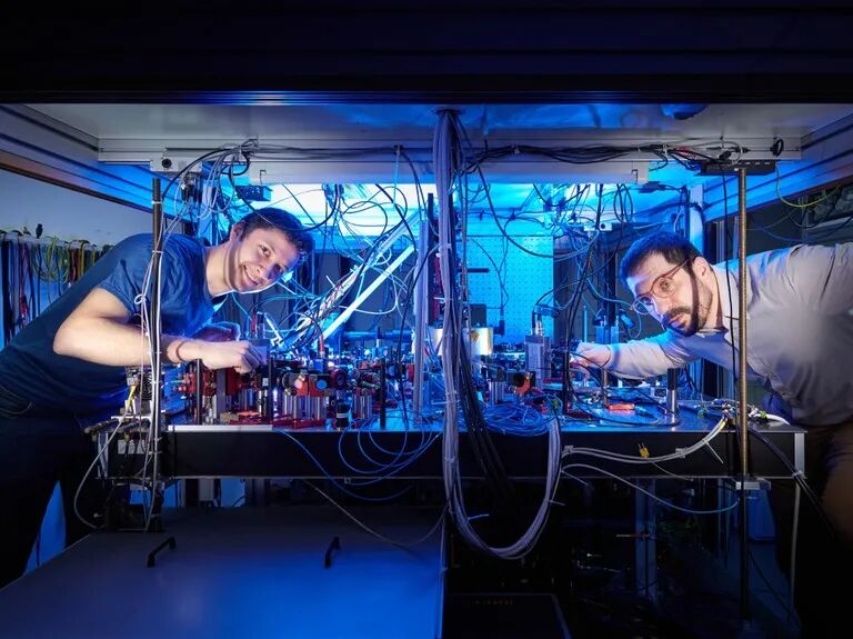 变身“服务员”的科学家在调整激光“托盘”。| 图片来源:Volker Lannert/University of Bonn