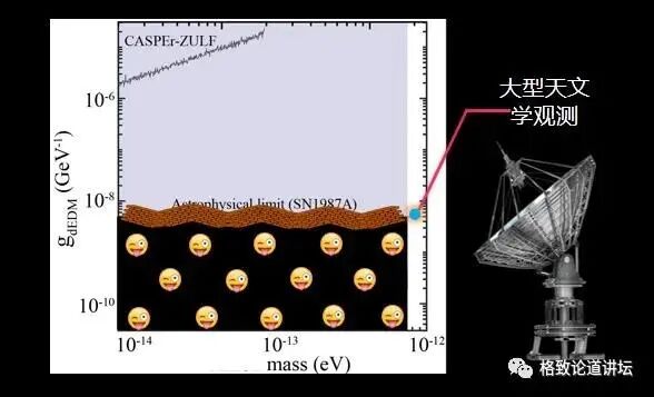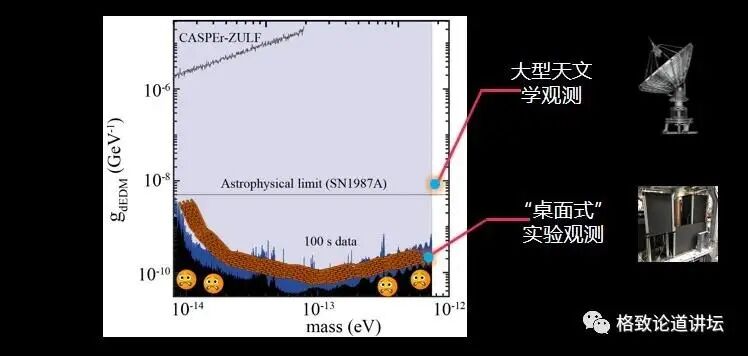 再看看我们最近的实验结果。大家发现了什么?这个界线往下拉了。那也就意味着我们的探测能力比刚才说的天文探测更强了。
