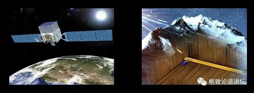 一个是飞行在高空的”悟空”号暗物质探测卫星(下图左),还有一个是安装在四川锦屏地下的PANDAX探测器(下图右)。它们共同的特点是非常适合搜寻高能区、大质量的暗物质粒子候选者,但它们都需要借助于我们国家的大科学平台,是耗资巨大的项目。