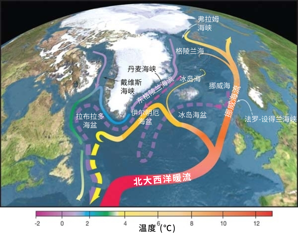 淡水流入海中的现象可能受到许多因素的影响,比如格陵兰冰盖融化带来的淡水流入、海冰融化、降水增加和河流径流等等。这些淡水不仅能够导致海平面上升,还能够对洋流产生影响。由于淡水比盐水轻,它能影响海水从深处下沉和上升的方式。这些因素增加了大西洋变暖对其环流的直接影响。