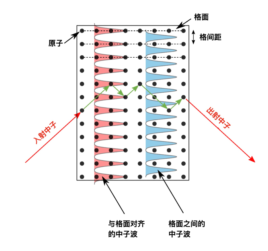 当中子穿过晶体时会产生两种不同的驻波——一种沿着原子面,另一种在原子面之间。这些波的相互作用会影响中子的路径,从而可以揭示晶体结构的各个方面。| 图片来源:NIST