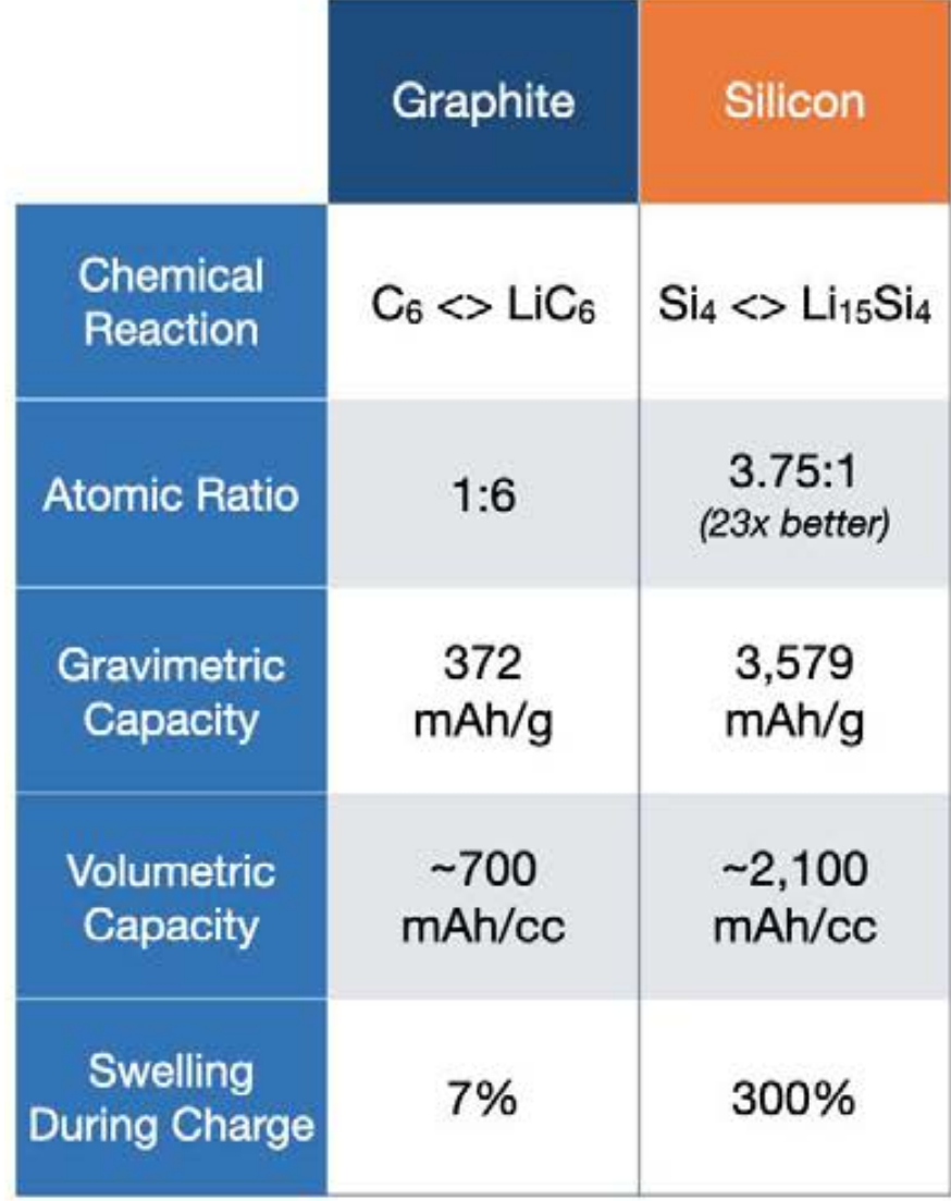 石墨与硅阳极的比较。(图片来源:The-Future-of-Energy-Storage)