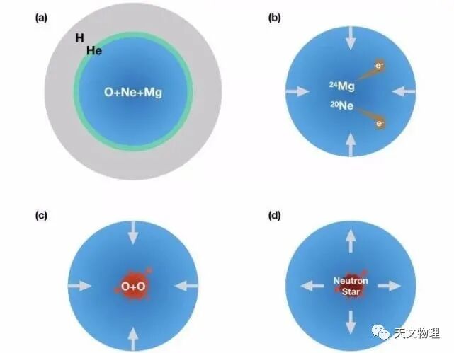 天文学家发现大质量恒星内部的氖,可以“吃掉”消耗核心中的电子,这一过程被称为电子俘获,这一过程会导致恒星坍缩成中子星并产生超新星。科学家感兴趣的是:研究质量范围在8到10个太阳质量范围内的恒星最终命运。这个质量范围很重要,因为它包括恒星是具有足够大的质量以经历超新星爆炸形成中子星,还是具有较小质量以形成白矮星而不会成为超新星之间的界限。