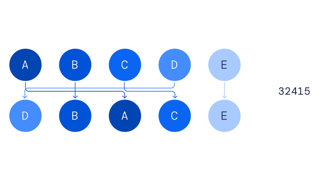 排列是对有序对象列表的重新排列,排列“32415”就将第1个元素放在了第3个位置,第2个元素仍保留在第2个位置,以此类推。| 图片来源:DeepMind