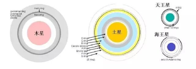 图4a:四大外围行星 “环”的复杂程度及大小之比较
