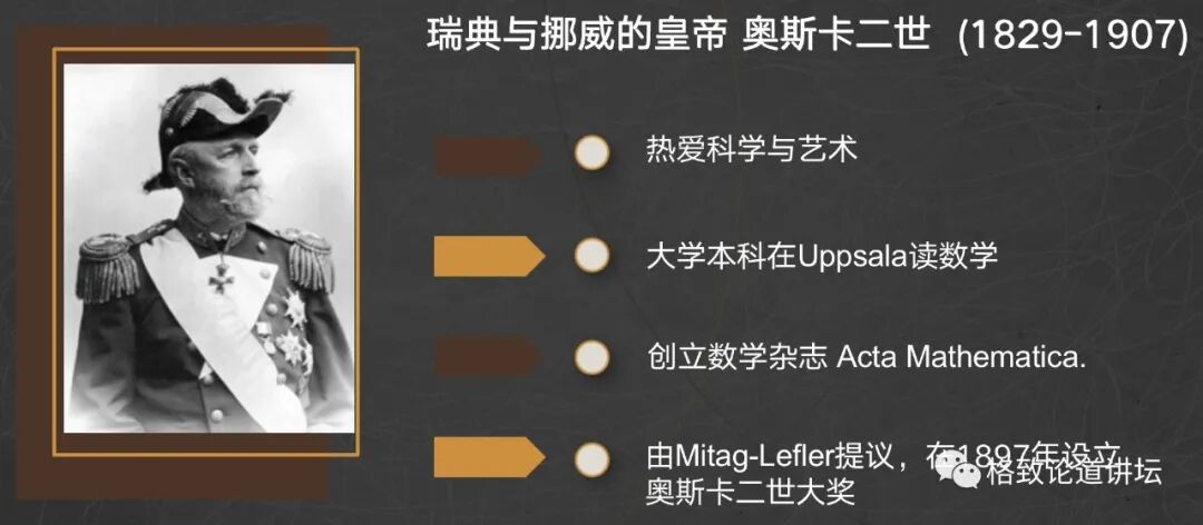 奥斯卡二世是一个很有意思的人,他非常喜欢艺术、科学,读的数学书也很多,经常请一些科学家去为他讲座。