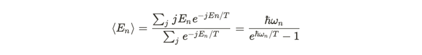 让我们试着计算一下热分布。如果频率为 n 的模式被激发 j ( j∈N )次,模式中的能量为 jEn 。我们可以将每种模式下的能量期望值写在下面。可观测值的期望是各个概率乘以该概率下发生的可观测值的总和(用符号<>表示)。