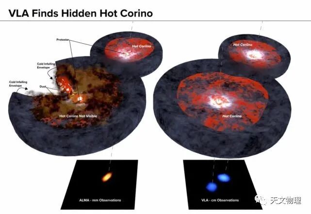 法国格勒诺布尔大学(IPAG)行星科学和天体物理研究所的塞西莉亚·塞卡雷利说:由于这两颗恒星是由同一分子云形成,同时,一颗恒星会被复杂有机分子的密集区域包围,而另一颗恒星则不会,这似乎很奇怪。复杂的有机分子,通过检测分子发射光谱线的特定无线电频率来发现,这些特征无线电频率充当识别化学物质的“指纹”。天文学家们指出,在这样富含有机分子区域发现的所有化学物质,都是通过在对应于几毫米波长无线电频率上探测到的这些“指纹”而发现。国家射电天文台的首席研究员、首席研究员克莱尔·钱德勒说:我们知道尘埃会阻挡那些波长,所以决定在更长的波长上寻找这些化学物质的证据,这些化学物质可以很容易地穿过尘埃。让我们震惊的是,尘埃可能是阻止我们探测到其中一颗双胞胎原恒星中分子的原因。天文学家使用VLA观测了一对名为IRAS4A的原恒星,它们位于距离地球约1000光年的恒星形成区域。在厘米波长上观察到了这对行星,在这些波长,寻找来自甲醇,CH3OH(木醇,不是用来喝的)的无线电辐射。这是一对,其中一颗原恒星显然有一颗有这样富含有机分子的区域,而另一颗没有,就像使用短得多的波长所看到的那样。领导该天体数据分析的IPAG研究生玛尔塔·德·西蒙尼说:在VLA中,两颗原恒星都显示出周围有甲醇的强有力证据,这意味着两颗原恒星都有炽热的高温区域,我们没有看到波长较短的那颗是因为尘埃。虽然现在已知这两个炽热的高温区域含有甲醇,但它们之间可能仍然存在一些化学差异。这可以通过寻找波长不被尘埃遮挡的其他分子来解决。意大利佛罗伦萨Arcetri天体物理天文台的克劳迪奥·科德拉说:这一结果告诉我们,使用厘米射电波长对于正确研究富含有机分子区域是必要的。未来,计划中的新望远镜,如下一代VLA和SKA,对于理解这些天体将非常重要。