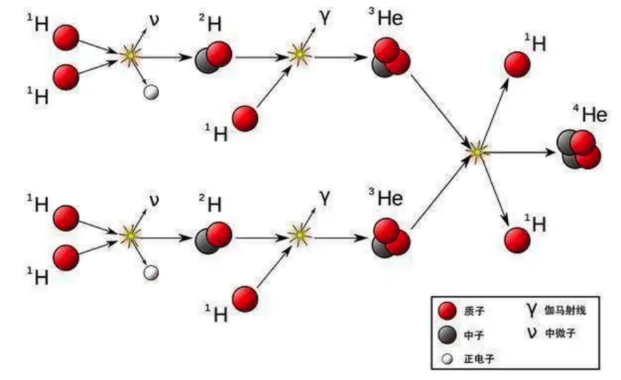 图1 质子-质子链式反应(太阳内部最主要的核聚变模式)